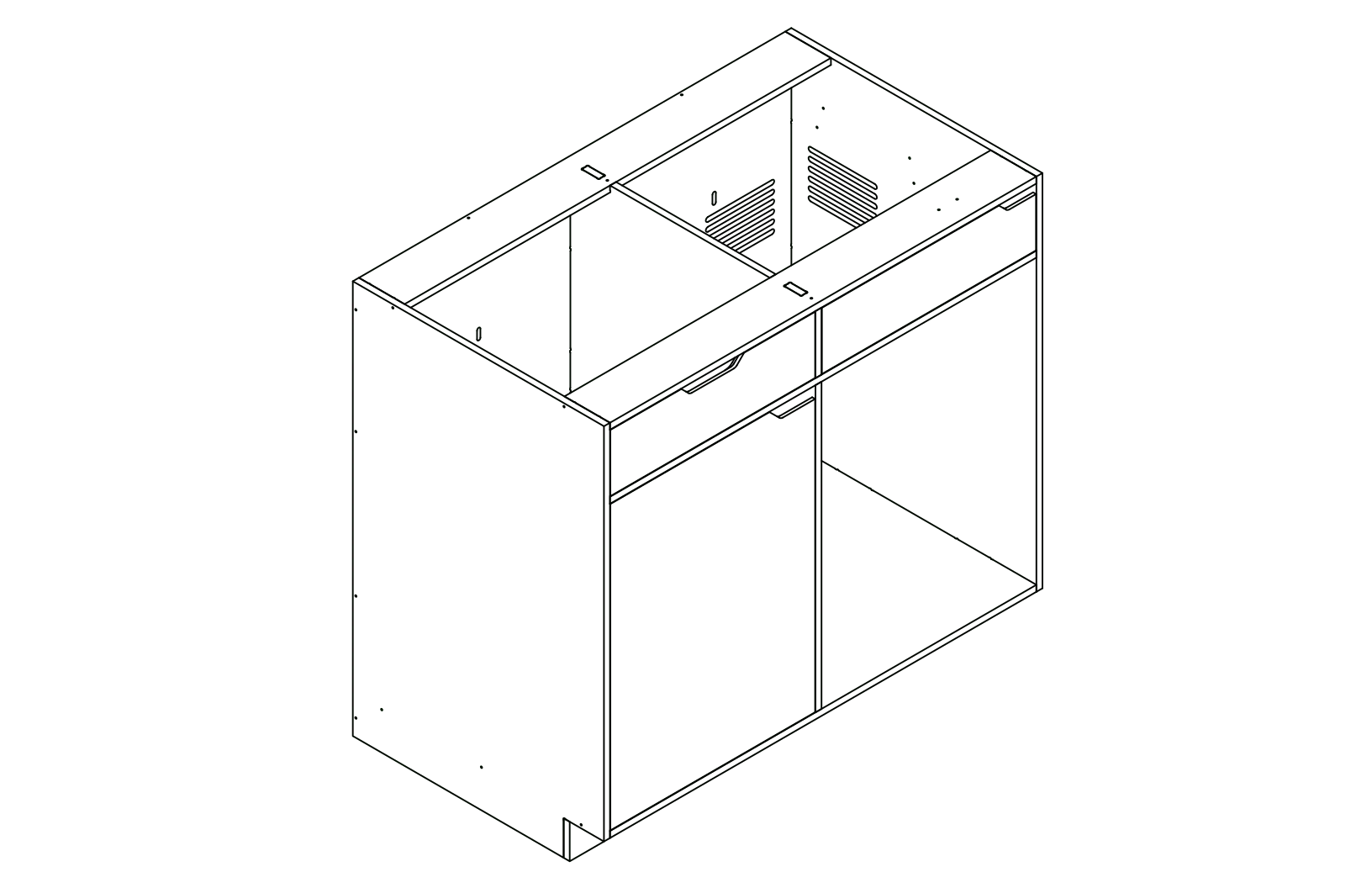 Description: This dual-unit Galley is an excellent choice for those who value water amenities and refrigeration. On the left side, there's a designated area perfect for installing a sink, complete with a convenient tip-out utility tray and a cutout specifically designed for a 5-gallon grey water tank. On the right side, you'll find ample space for a CR85 fridge, accompanied by an extra drawer on top to enhance storage capacity.