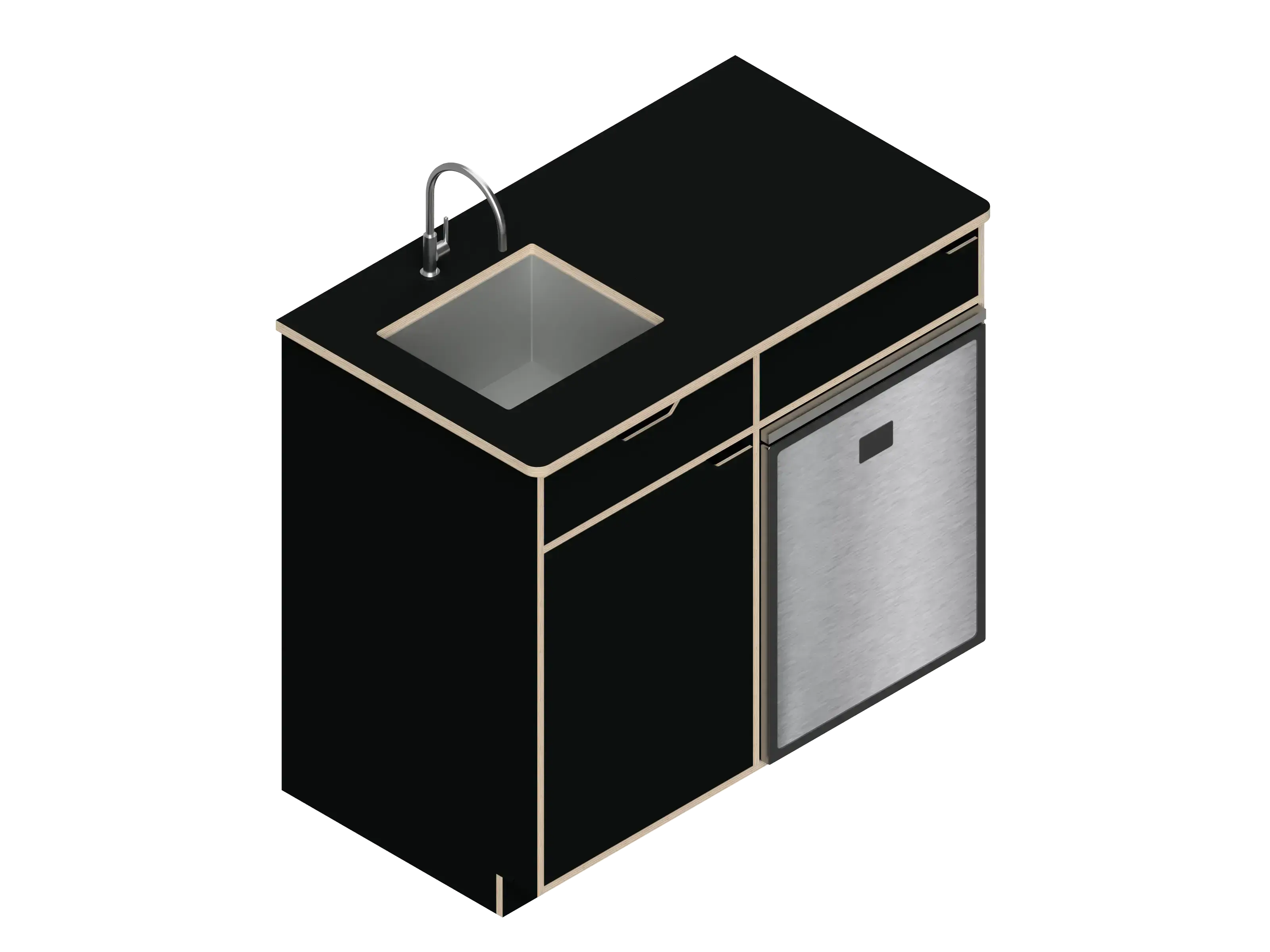 Disclaimer: Grey water tank not inluded. Fits our standard Ruvati sink (Sink kit sold separetely). Fits the Isotherm Cruise 85 Refrigerator only (CR85 not included). Dual slot for mounting on the back (mounting kit not available for this cabinet). Countertop can be ordered separetely.