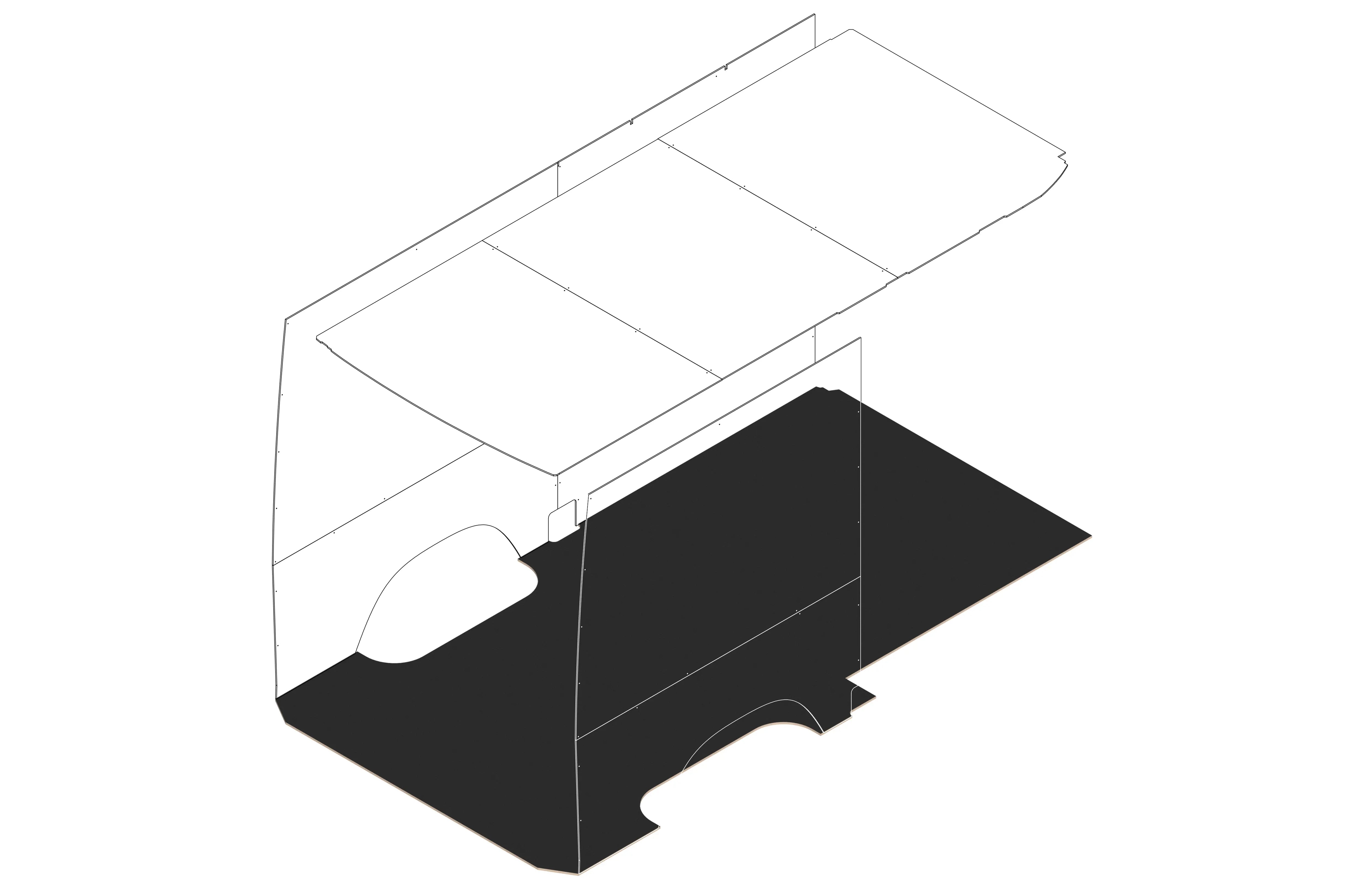 Description: Designed specifically for Sprinter 144" vans, this precision-cut 1/2" HexPly floor kit features three interlocking panels that sit cleanly on the factory floor ribs and lock together for a seamless, rattle-free fit. Made from durable layered birch HexPly, the surface has a grippy off-black textured finish that holds up to heavy use while giving your van a clean, modern look. The kit is built for a simple DIY install, includes Sikaflex adhesive, and requires no specialty tools — making it an easy way to achieve a high-end, professional floor with minimal effort.